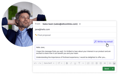 AI email writers turn simple prompts into professional, high-quality sales emails and AI email summarizers simplify lengthy threads with a single click.
