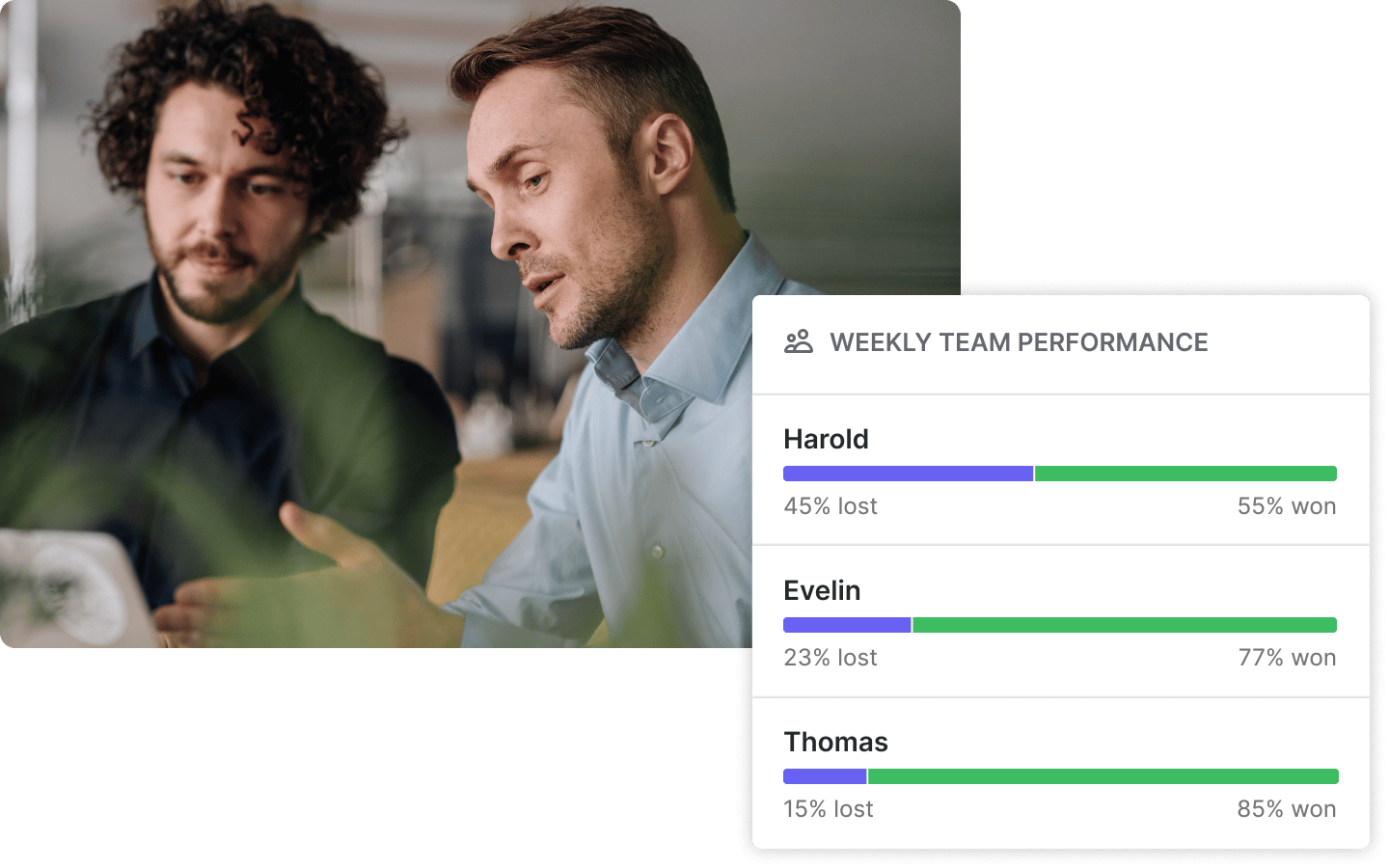 Your sales team is only as strong as its weakest link. Pipedrive helps you generate performance reports to help you spot reps who are falling behind and design custom training.