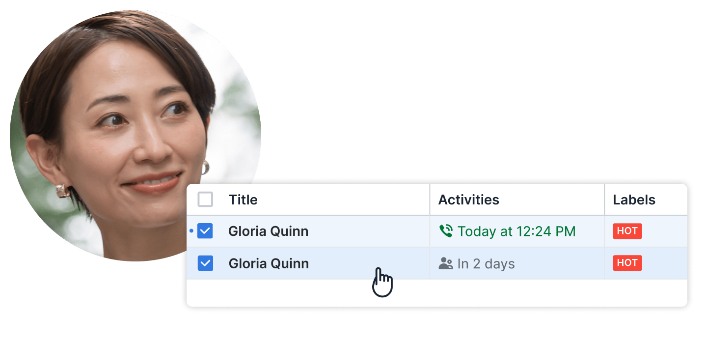 Use an integrated calling app to log in-app calls automatically as completed activities under the correct deals. See when a prospect was last contacted either by email, phone or in person.