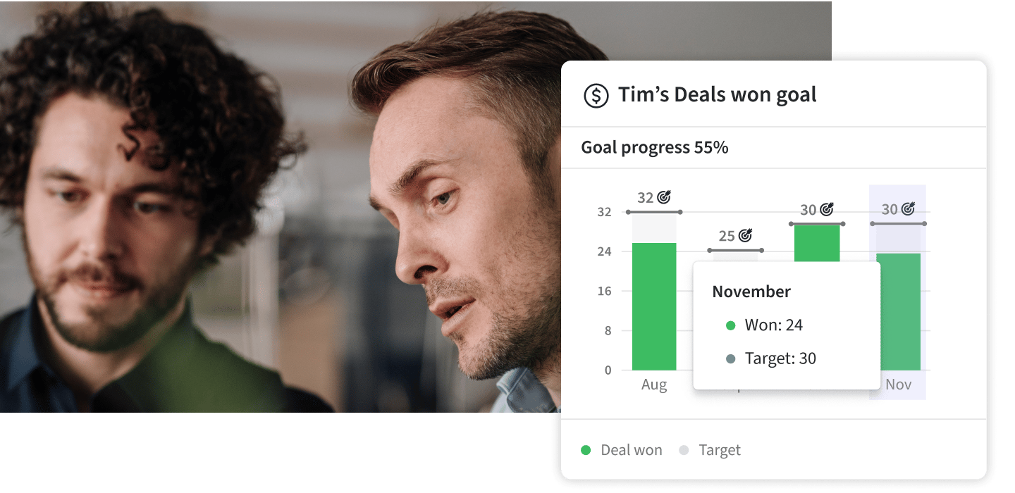 Customize your dashboards to quickly see how sales team metrics measure up against your company goals. Develop performance-driven teams and hit targets faster.