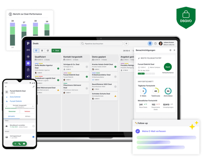 Mit Pipedrive können Sie Ihre Sales-Pipeline tracken, Leads optimieren, Deals mit KI managen und Ihren gesamten Vertriebsprozess automatisieren, damit Sie sich ganz aufs Verkaufen konzentrieren können.