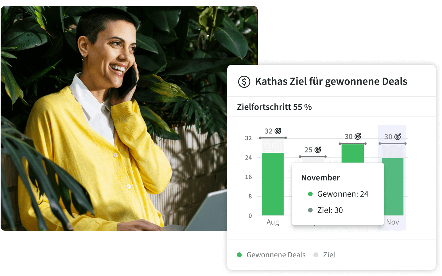 Definieren Sie Ziele und messen Sie mit visuellen Berichten und Dashboards Fortschritte. So erkennen Sie Engstellen schnell und sorgen dafür, dass Ihre Pipeline rund läuft.