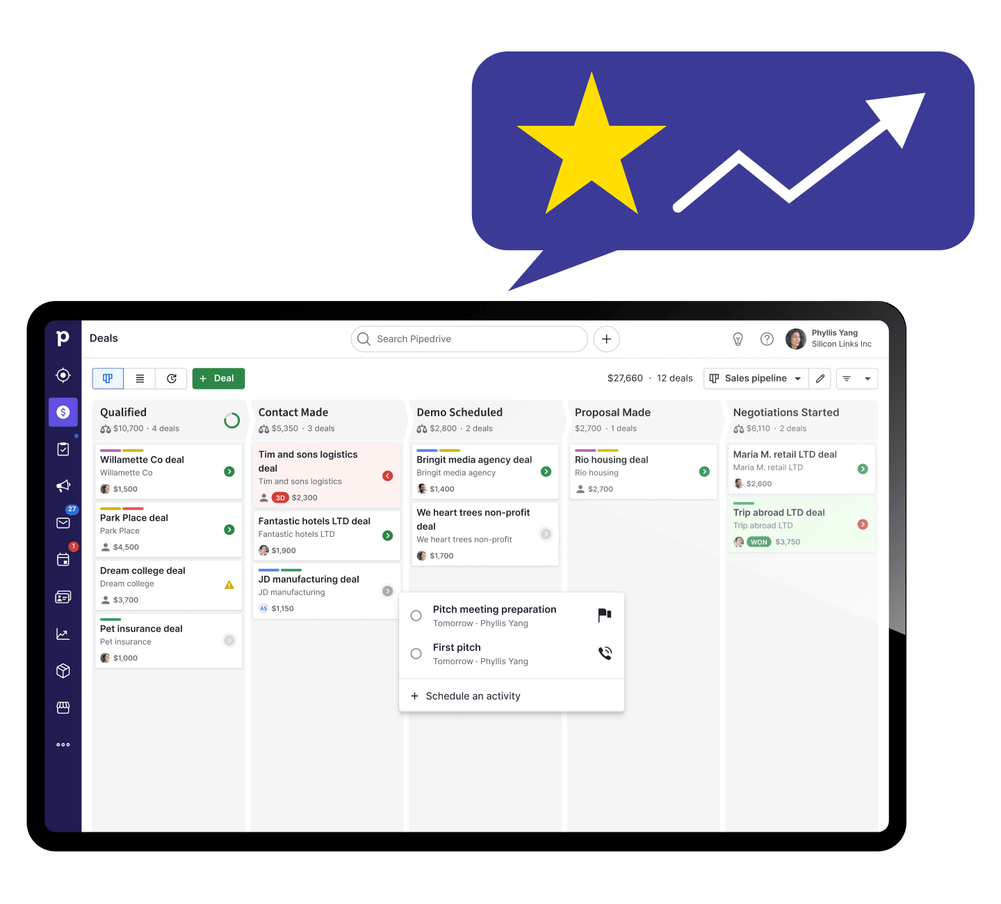 Pipedrive’s integrations make it easy to build workflows and automations that boost productivity.