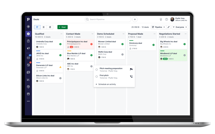 Sales management software fosters teamwork among your sales reps by making it easier to share information about leads and deals. Using a sales management system like Pipedrive allows teams to automate manual tasks, collaborate easily and get more done to hit their and the company’s sales goals.