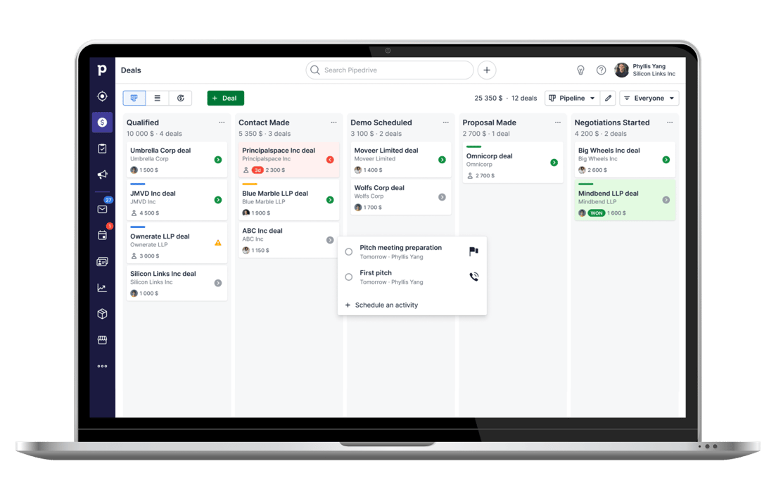 Pipedrive’s CRM platform is designed with salespeople in mind. It’s easy to use and can be customized to suit your business’s needs. Simply log in, design your sales pipeline with drag-and-drop features and start closing deals.